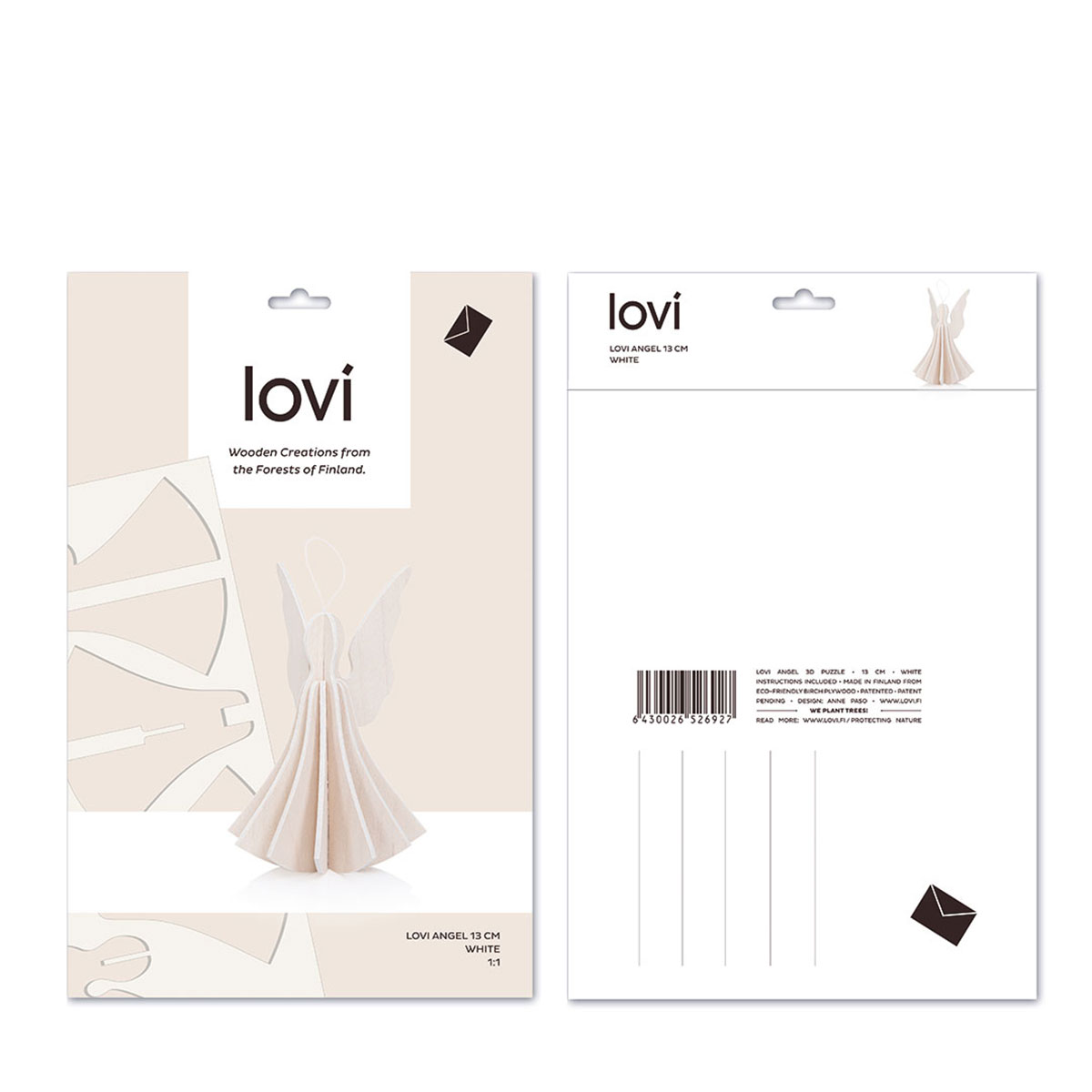 Lovi Angel är en bärare av ljus och glädje. Den skapar en fridfull aura som påminner dig om kärlek och människor nära dig. Ängelklänningen är klockformad och dess vackert designade vingar är något upphöjda. Denna typ av form är tidlös och trä som material skapar en traditionell atmosfär. Sätt ihop denna lilla ängel enligt instruktionerna som medföljer och häng den på en gren i din julgran. Du kan också placera ängeln på en plan yta utan hängande tråd – på en fönsterbräda, på en hylla eller på ett sidobord – var du vill. Lovi Angel, som alla andra Lovi-karaktärer, är…