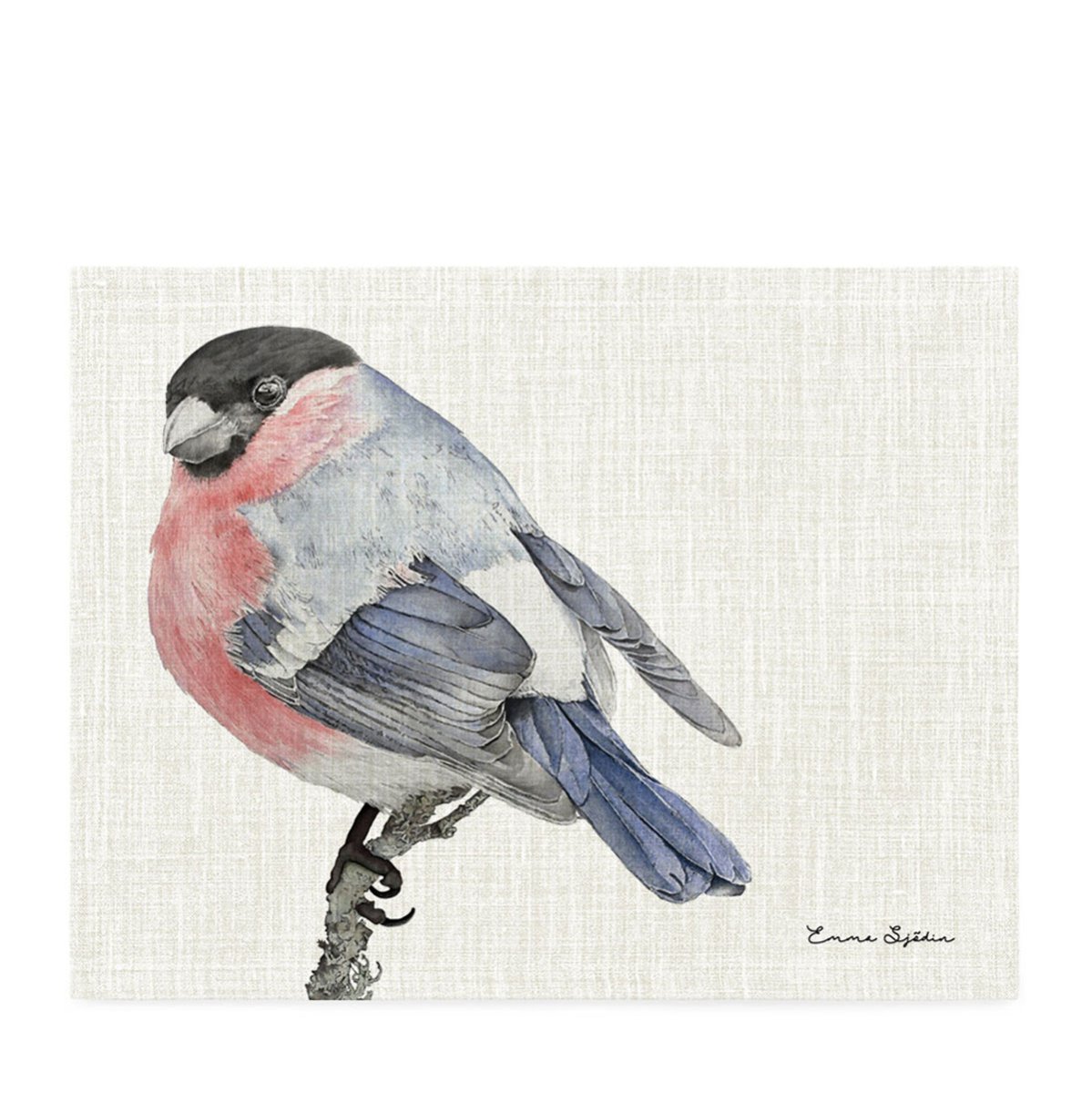 Bordstablett med Domherre passar extra bra till höst och jul. Är den första fågeln i en vinterkollektion som Emma Sjödin tecknat.