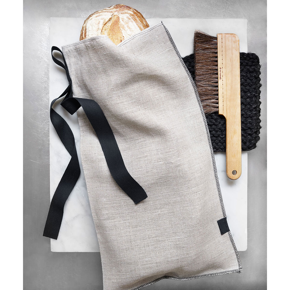 Brödpåsen är den perfekta förvaringen av bröd för den inbitne surdegsbagaren. Att stoppa surdegsbröd i en plastpåse gör brödets skorpa mjuk och degig. I brödpåsen behåller den sin knapriga skorpa. Påsen är fin både vid servering och förvaring. Den är tillverkad i otvättad lin, vid sin första tvätt får den sin härliga grova känsla som tvättat lin har. Påsen är sydd för att efter tvätt passa en halv normalstor levain. Krymper 5-10 % vid tvätt.