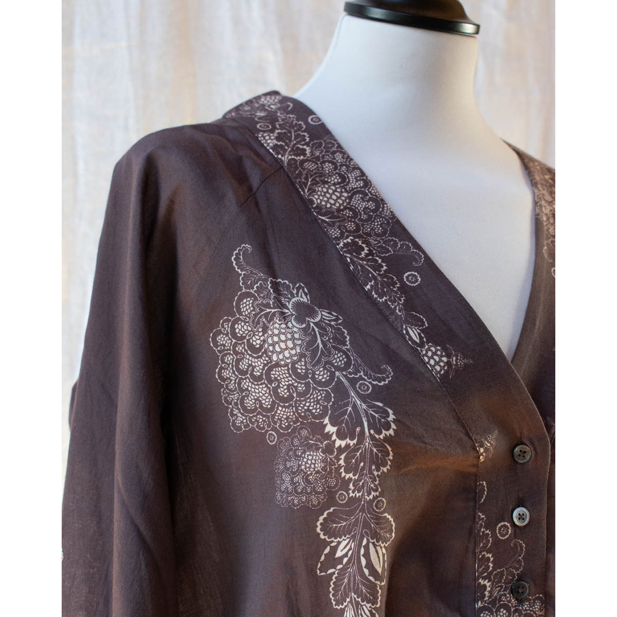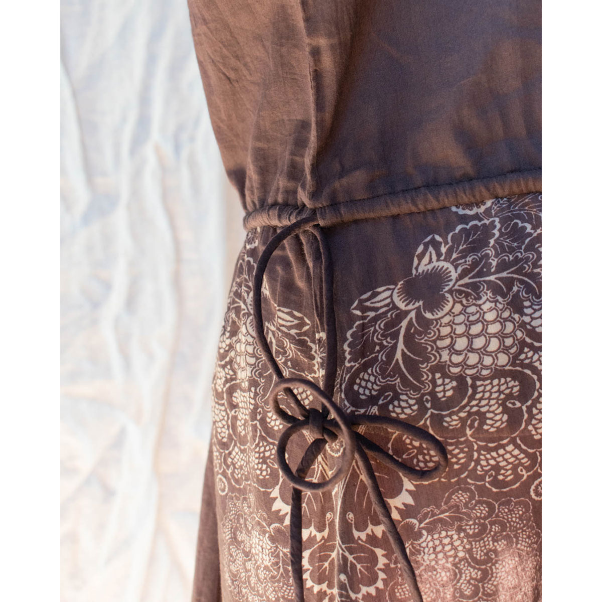 Skön sommarklänning i en tunn bomullsvoile. Dragsko med snöre så att du kan reglera midjan. Handritade print och välsydda detaljer kännetecknar Michala Wiesnecks plagg.